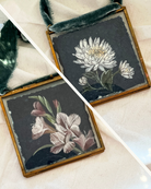 - A double-sided linen card is included beautifully explaining the symbolism of each flower. Display the card behind the art to share the meaningful stories or remove it to showcase both paintings simultaneously