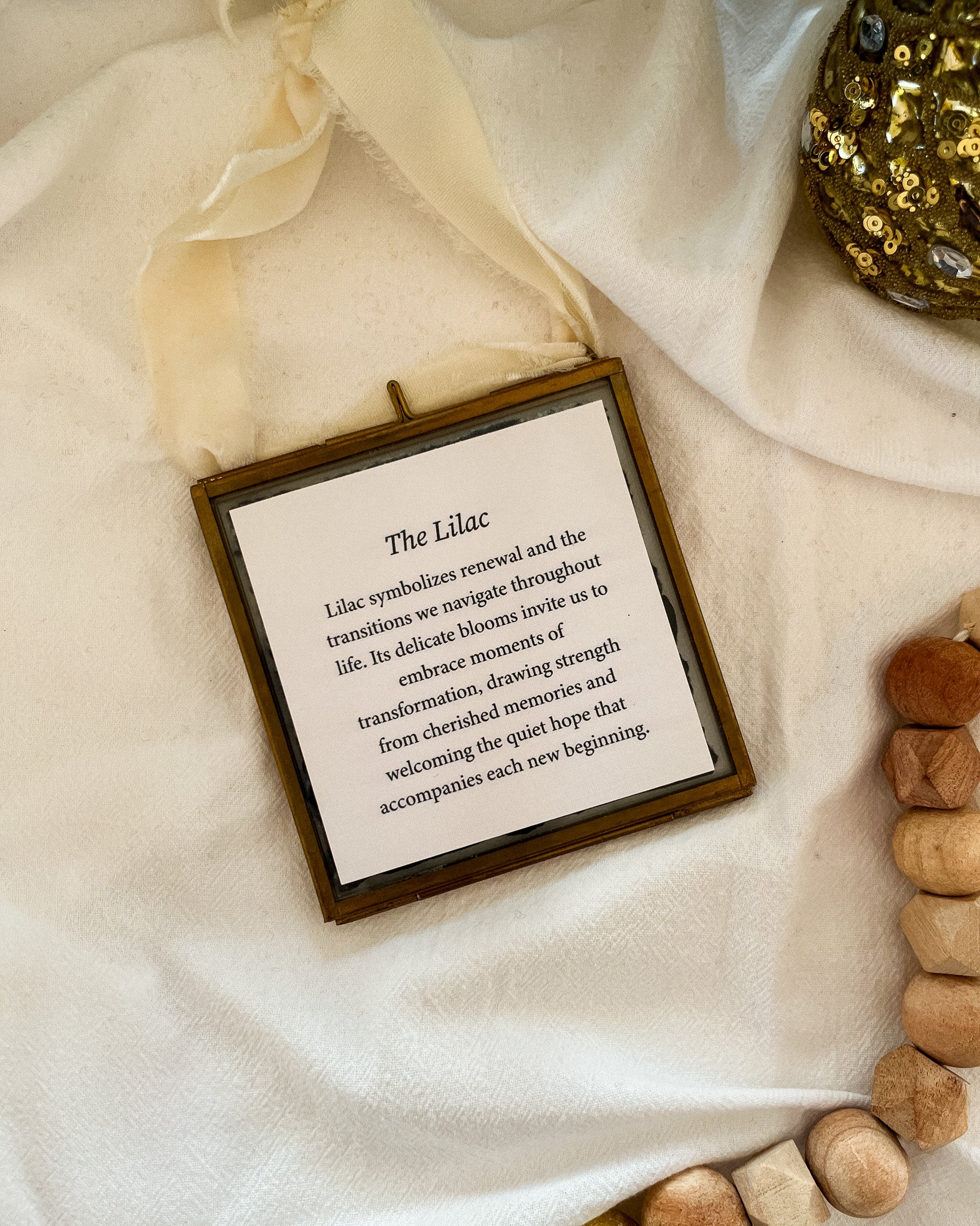 Lilac: The lilac symbolizes renewal and the transitions we navigate throughout life. Its delicate blooms invite us to embrace moments of transformation, drawing strength from cherished memories and welcoming the quiet hope that accompanies each new beginning.