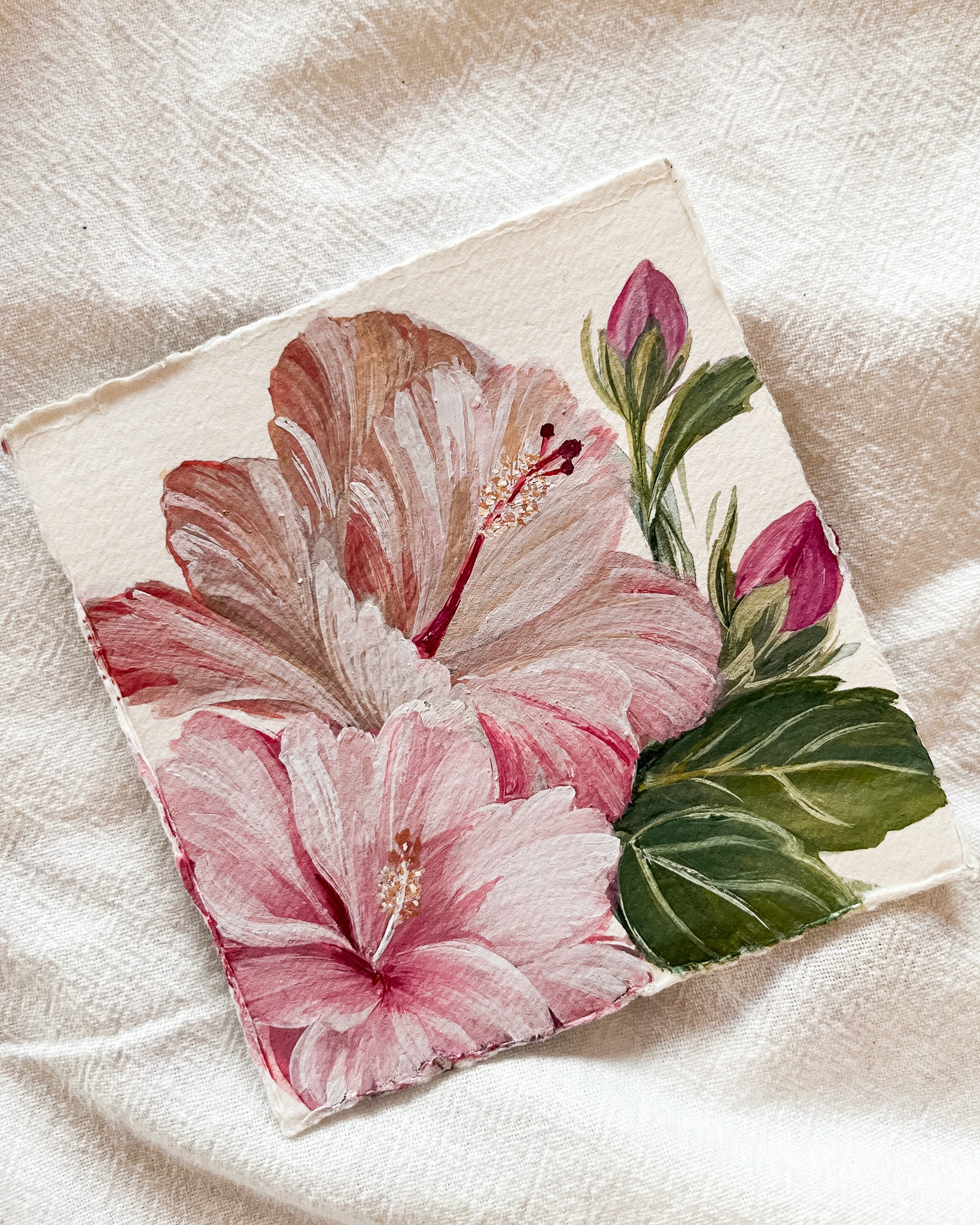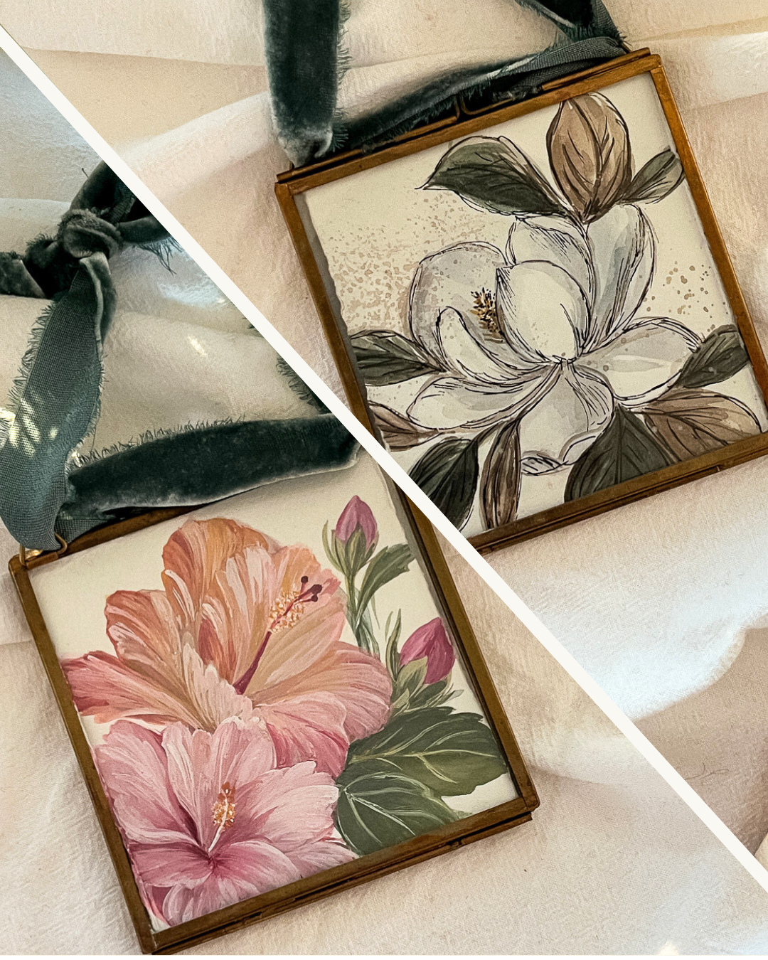 - A double-sided linen card is included beautifully explaining the symbolism of each flower. Display the card behind the art to share the meaningful stories or remove it to showcase both paintings simultaneously