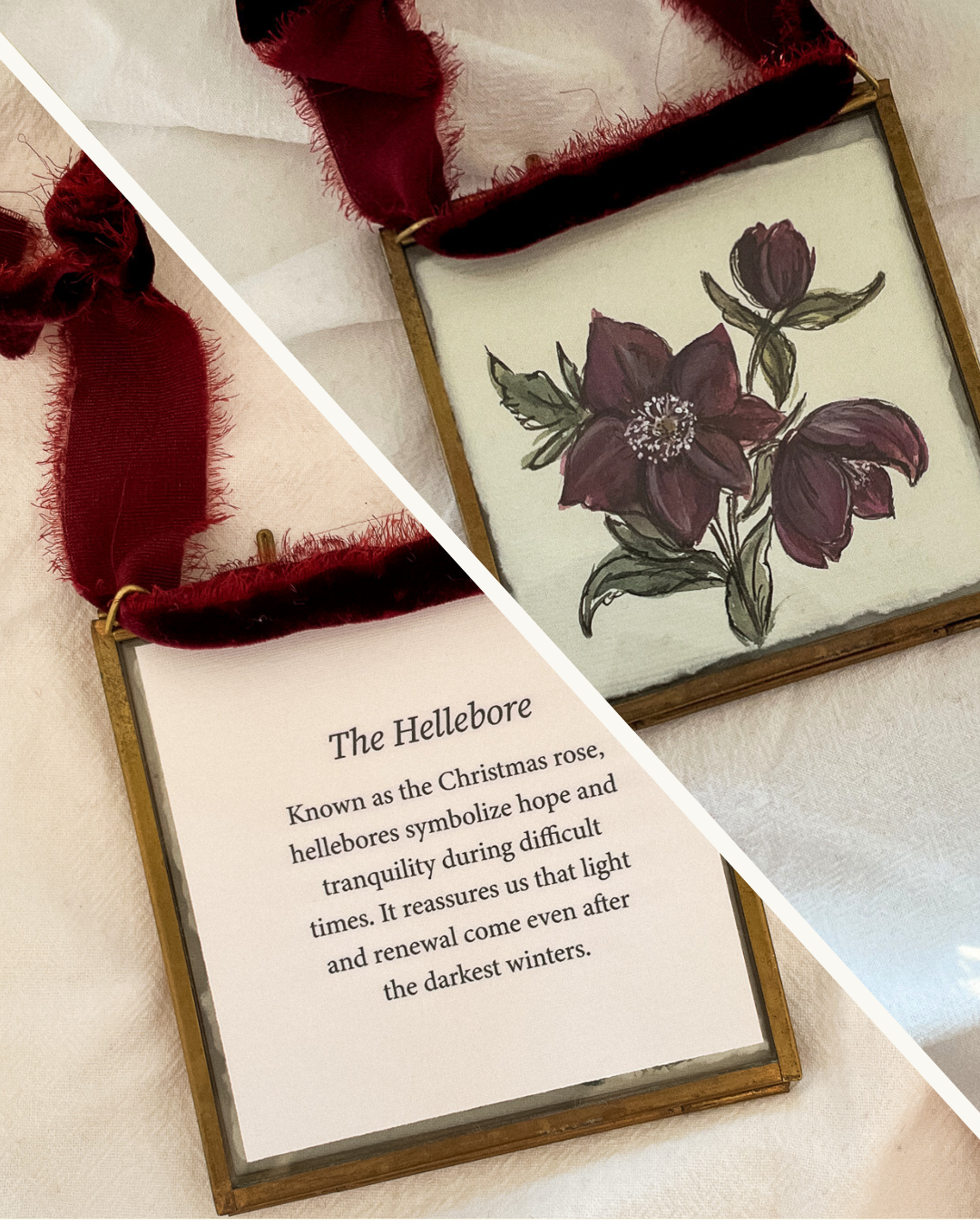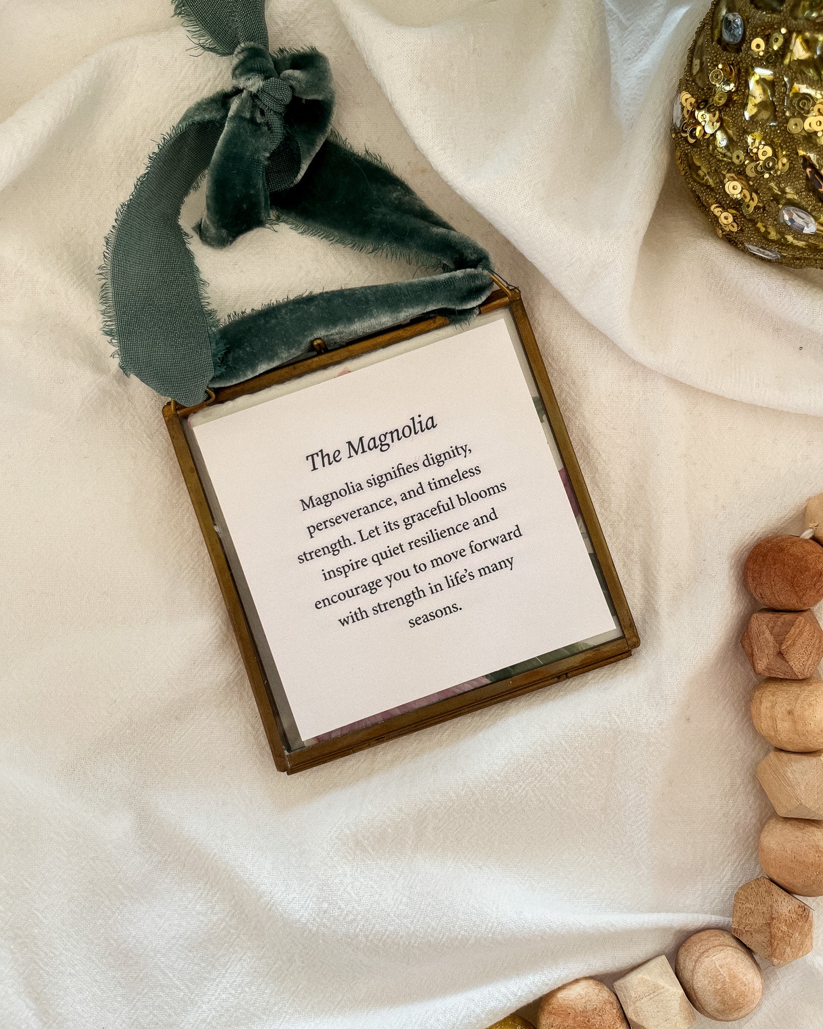 Each ornament comes with a double-sided symbolism card that can be flipped, allowing you to uncover the meaningful story behind the floral artwork.