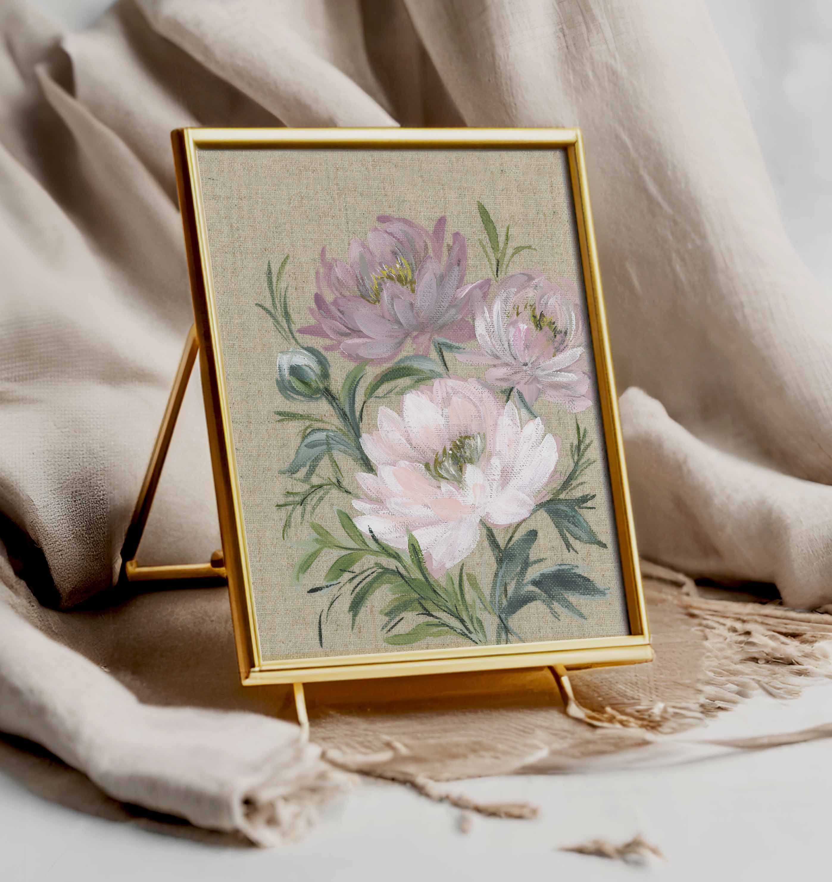 Experience original artwork on timeless linen, where the natural elegance of the surface meets the rich, vibrant tones of gouache. Appreciate the beauty and tactile quality of each piece, presented in its pure, unrefined form.