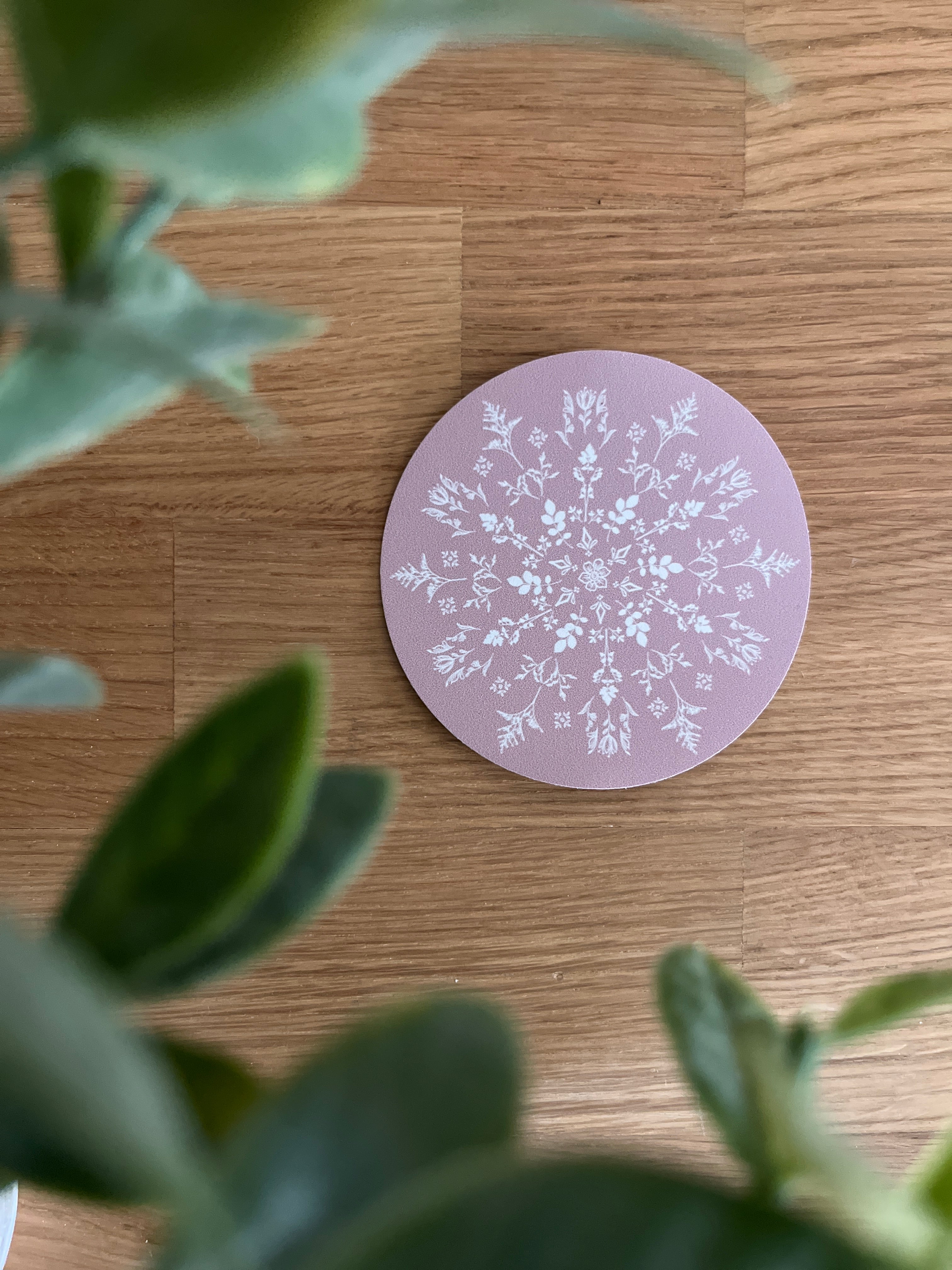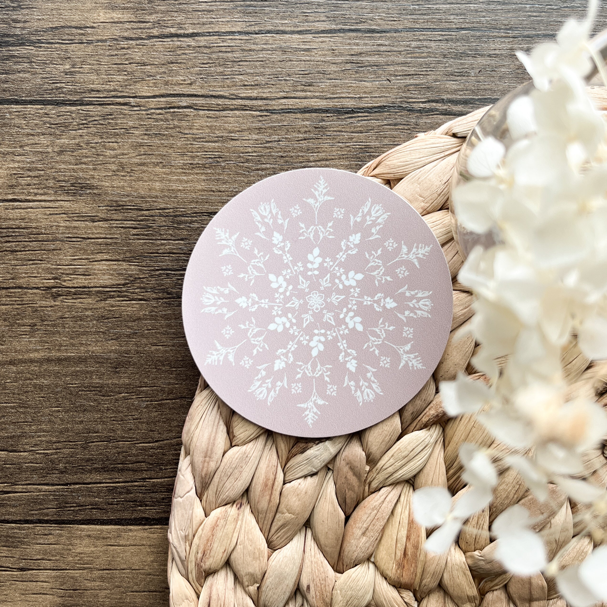 This mandala created with organic painted florals in an intricate design can add a touch of charm to any object it adorns. It is ideal to serve as a standout feature to your personal items. Available in 3 colors!