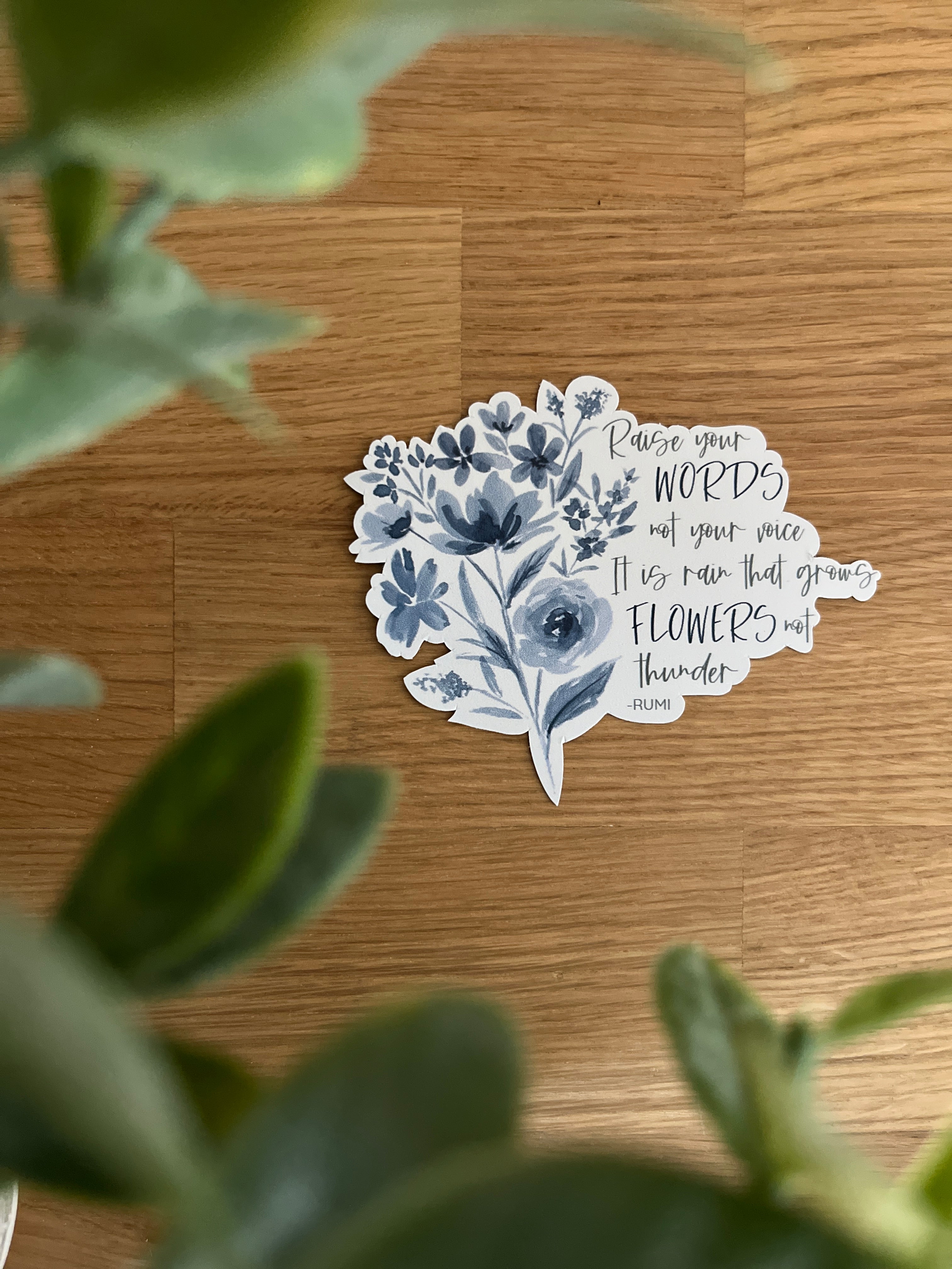 This sticker features watercolor floral art and a famous quote reminding us of the transformative power of words when they are instilled with kindness, gentleness, and compassion. Made with waterproof vinyl, this durable sticker is perfect for laptops, water bottles, notebooks and more. This sticker is also perfect for offering an inspirational gift!
